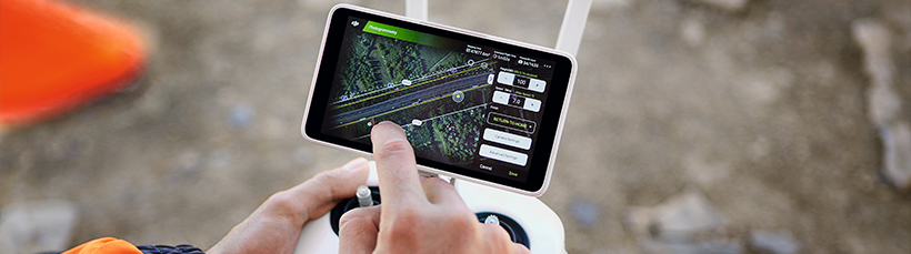 O piloto pode controlar o Phantom 4 RTK com dois modos de planejamento (voos com Trajetória ou de Fotogrametria), além de